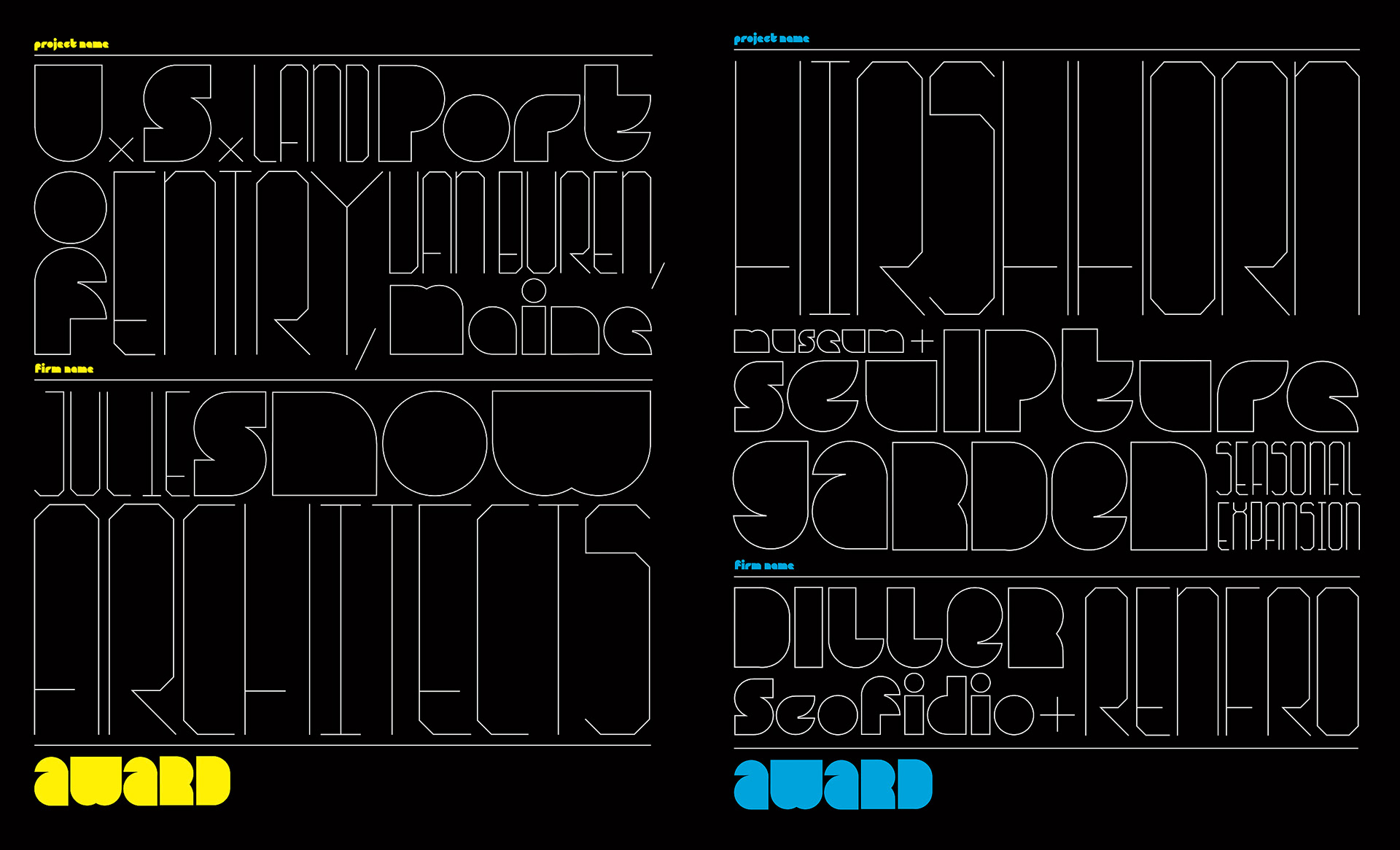 In partnership with Tom Brown Art + Design, we developed a custom display typeface — a complete alphabet — alongside the packaging for the Progressive Architect Awards.
