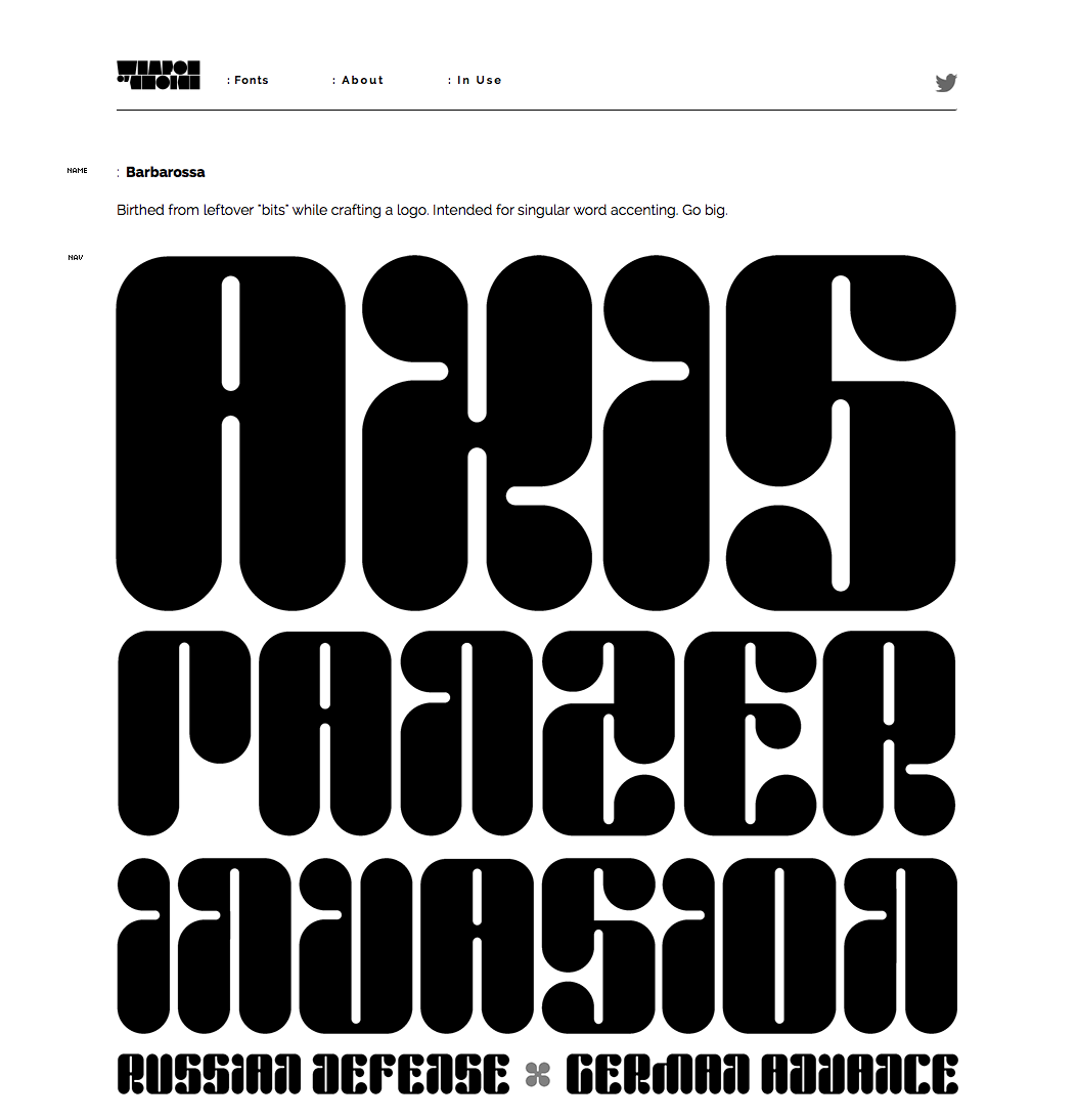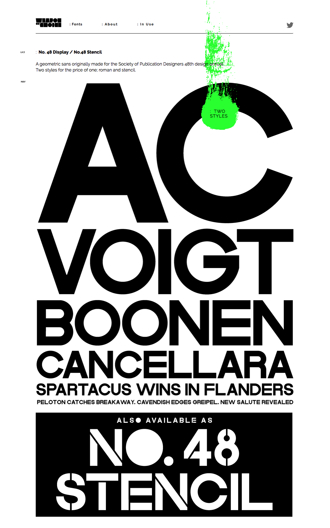 Weapon of Choice is a design studio creating bespoke fonts for custom and retail sales. As a founding partner and creative director, I designed the award winning website as well as develop half of the fonts in our library.